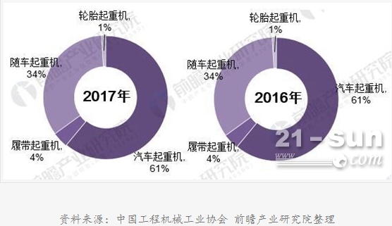圖表2:2016-2017年中國起重機銷量結構對比圖(單位:%)